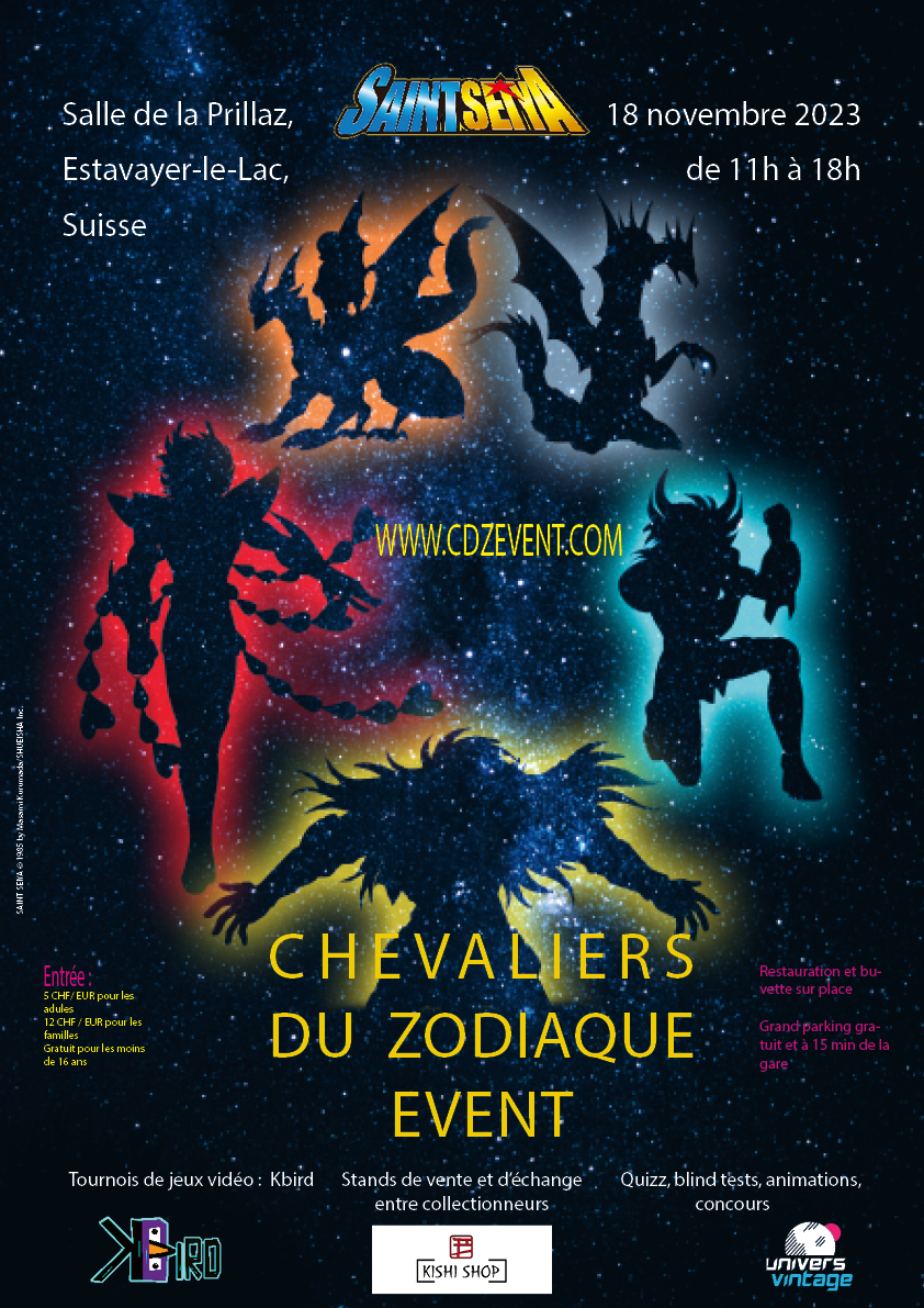 Estavayer-le-Lac, samedi 18 novembre 2023, 11h, les portes s'ouvraient sur la première convention suisse dédiée à l'univers des Chevaliers du zodiaque ! Echanges entre passionnés, collectionneurs, nostalgiques ou encore curieux. Nous avons mis sur pied un évènement, mais VOUS avez tous participé à le rendre unique ! Yvan, Nicolas ainsi que tous les bénévoles ayant oeuvré durant cette journée vous remercient du fond du coeur. Des remerciements également aux personnes nous ayant fait confiance en mettant leur stand à l'honneur ou ayant parcouru de nombreux kilomètres pour venir en Suisse avec une pensée particulière pour Franck, Mathieu et Thomas, nos amis français. Et à l'honneur, quelques vidéos de Strega Collector , Vintoys et Yvan.